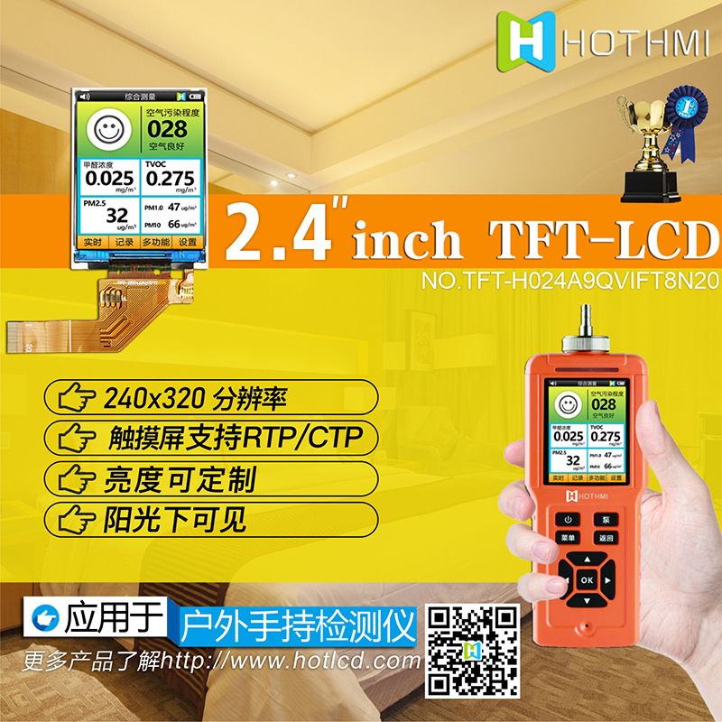 TFT-H024A9QVIFT8N20 is a 2.4-inch TFT color LCD module with 240*320 resolution, which is carefully designed by HOTDISPLAY,65K / 262K true color, built-in JD9852 controller, high picture quality, wide viewing angle, support MIPI interface, infinite peripheral circuit, only 20pinfpc connection (optional connector), 2.8V voltage. All materials meet the ROHS standard of environmental protection requirements. This module can be equipped with touch screen, which is widely used in various instruments, intelligent equipment, analytical instruments, hand-held instruments, driving recorder, etc. it is suitable for a variety of single-chip development platforms, such as 8051, PIC, AVR, Arduino, arm and Raspberry PI.