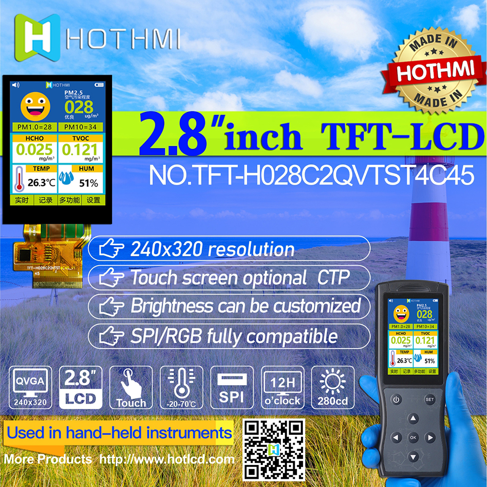• Model : 2.8 inch TFT/240*320 resolution/12H viewing angle/full compatible interface/with CTP capacitive touch/TFT-H028C2QVTST4C45