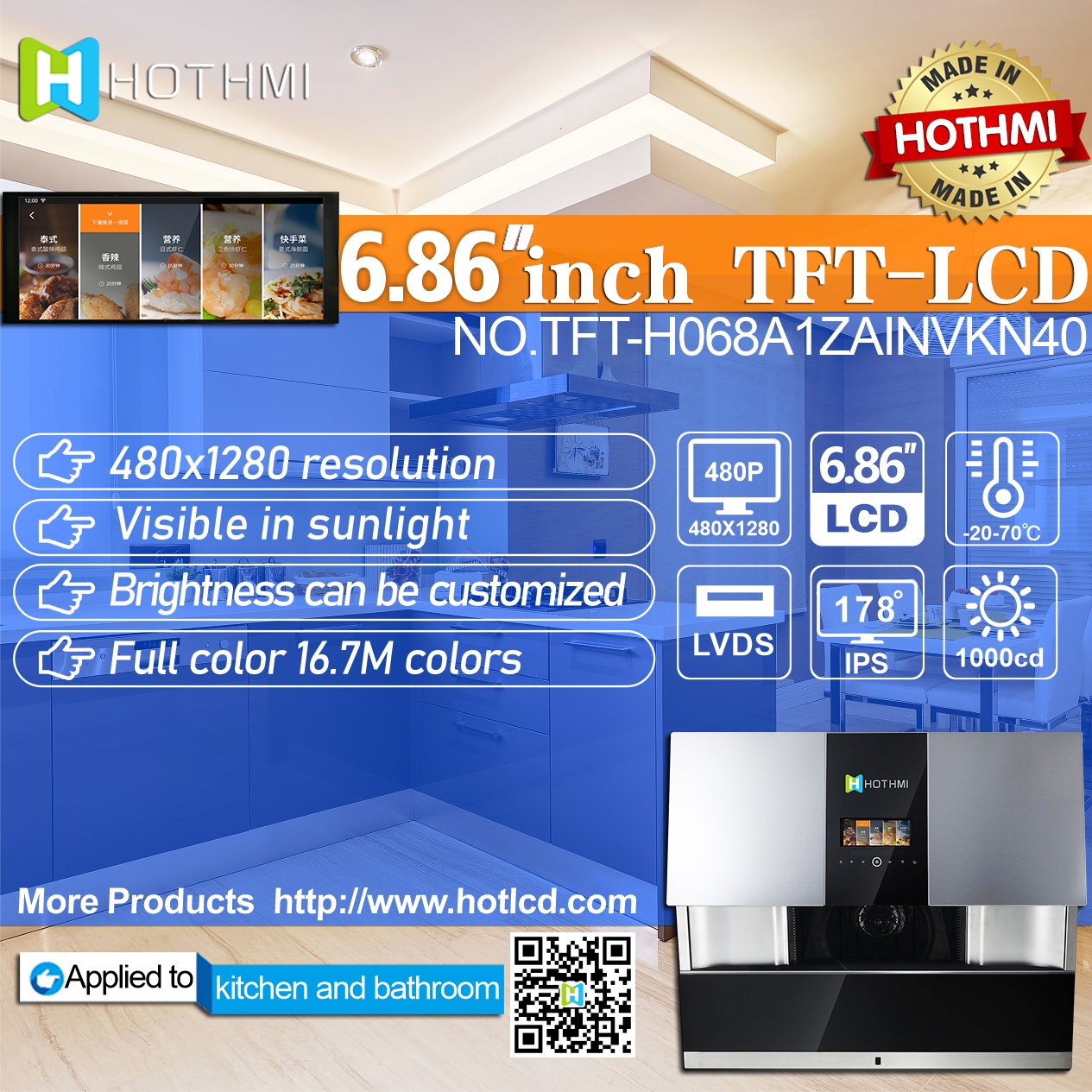 • Model : 6.86 inch TFT /480*1280 resolution/IPS/LVDS 4L interface/TFT-H068A1ZAINVKN40