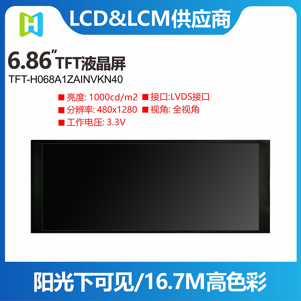 Location:Home  >  Product center  >  TFT display  >  TFT round screen | TFT square screen | long strip TFT display  >  6.86寸TFT液晶屏/長條形/480*1280分辨率/IPS/LVDS 4L 接口/TFT-H068A1ZAINVKN40