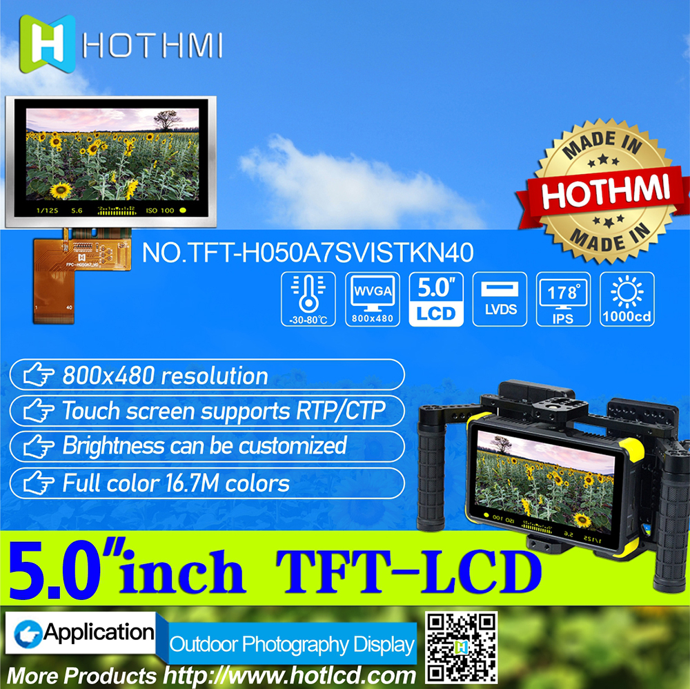 • Model : 5.0 inch TFT color LCD screen / 800*480 resolution / full viewing angle IPS process | high brightness visible in sunlight / LVDS interface/TFT-H050A7SVISTKN40