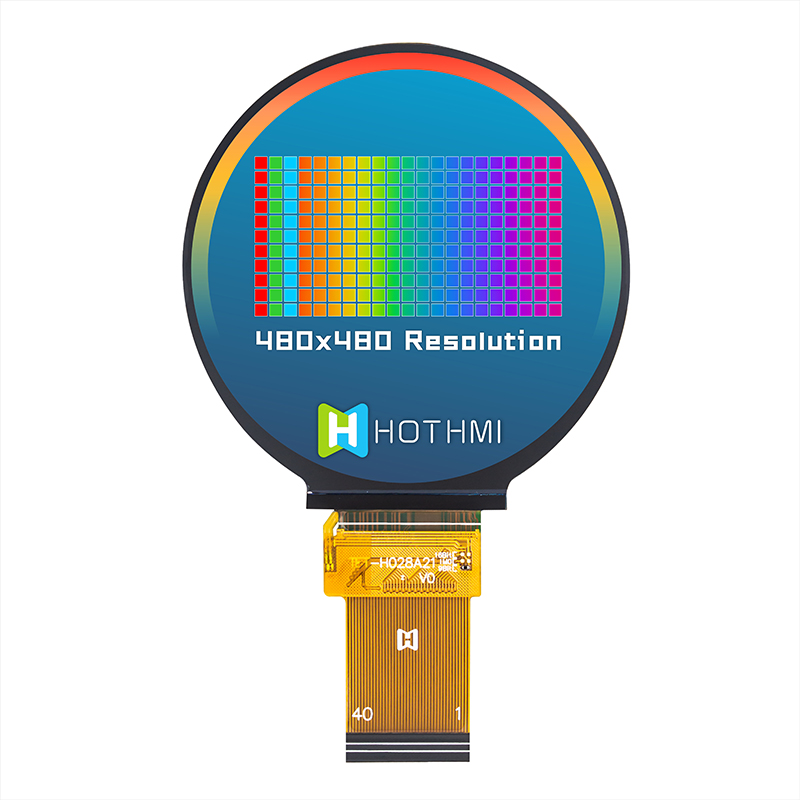 Model: TFT-H028A21ZHIST3N40 Screen Size: 2.8 inches Screen Type: IPS Round Screen Resolution: 480x480 pixels Controller Chip: ST7701S Application: Industrial Control Interface Type: RGB+SPI Temperature Range: -30℃~80℃