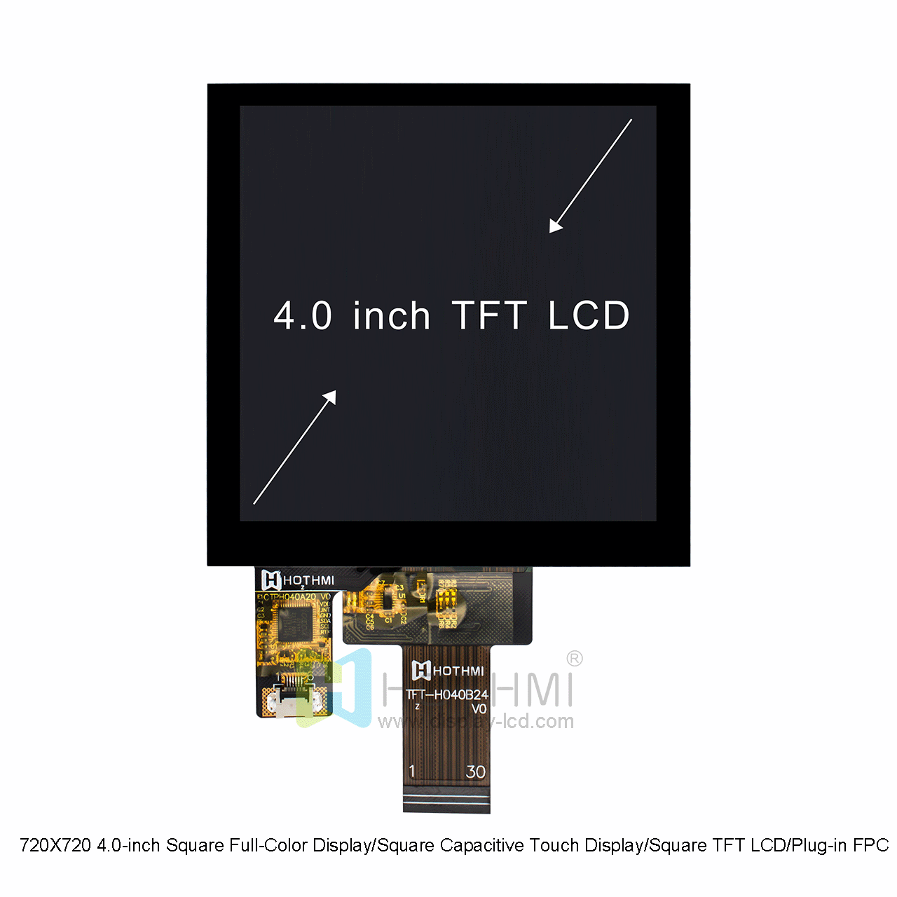 • Model : 720X720 4.0-inch Square Capacitive Touch Display/Square TFT LCD/Plug-in FPC TFT-H040B24ZKIST3C30