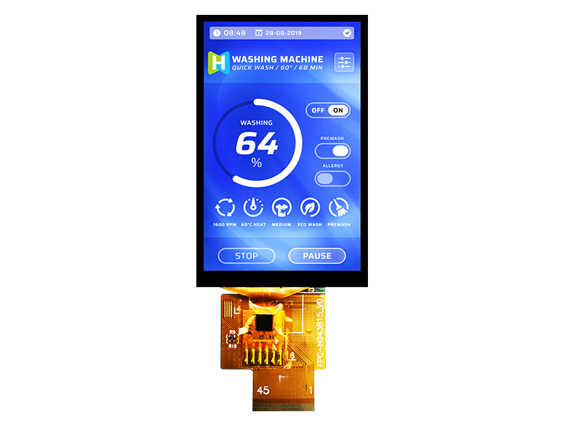 4.3 Inch TFT LCD Display Module 480X800 TFT LCD Display Manufacturer For Instrumentation H043B15WVIST4N45 TFT LCD 480x800 60.86x102.57x2.3 4.3 4.3 56.16x93.6 Full view 450cd/m2 45pin SPI Anti-static ESD 8KV -20~70℃ 2.8v ST7701S