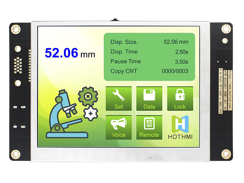 5.6 inch IPS 640x480 px TFT LCD module with driver board for Raspberry Pi HTM-H056A01-A01 TFT Module 640x480 163.5x102x20.7 5.6 5.6 112.9x84.67 Full view 200cd/m2 VGA Anti-static ESD 8KV -10~60℃ 9V~12V