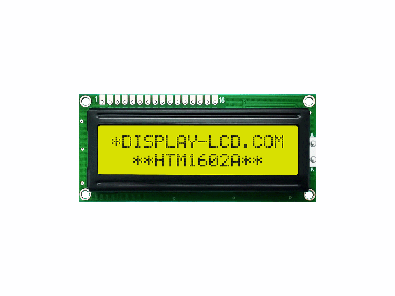 2X16 Character LCD Module Display | STN+ Gray Display with yellow/green Side Backlight-Arduino HTM1602A-11Y-A5P Character LCD Module 16x2 80.0x36.0x13.1 64.5x15.8 55.8x10.64 6H YG 16PIN MCU Anti-static ESD 8KV -20~70℃ 5.0V ST7066U