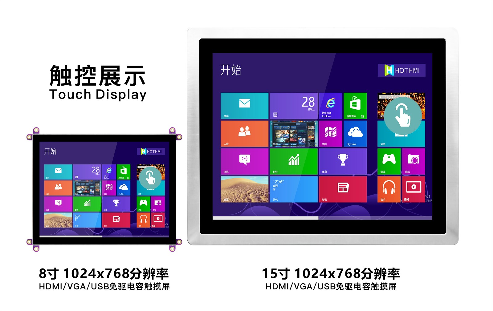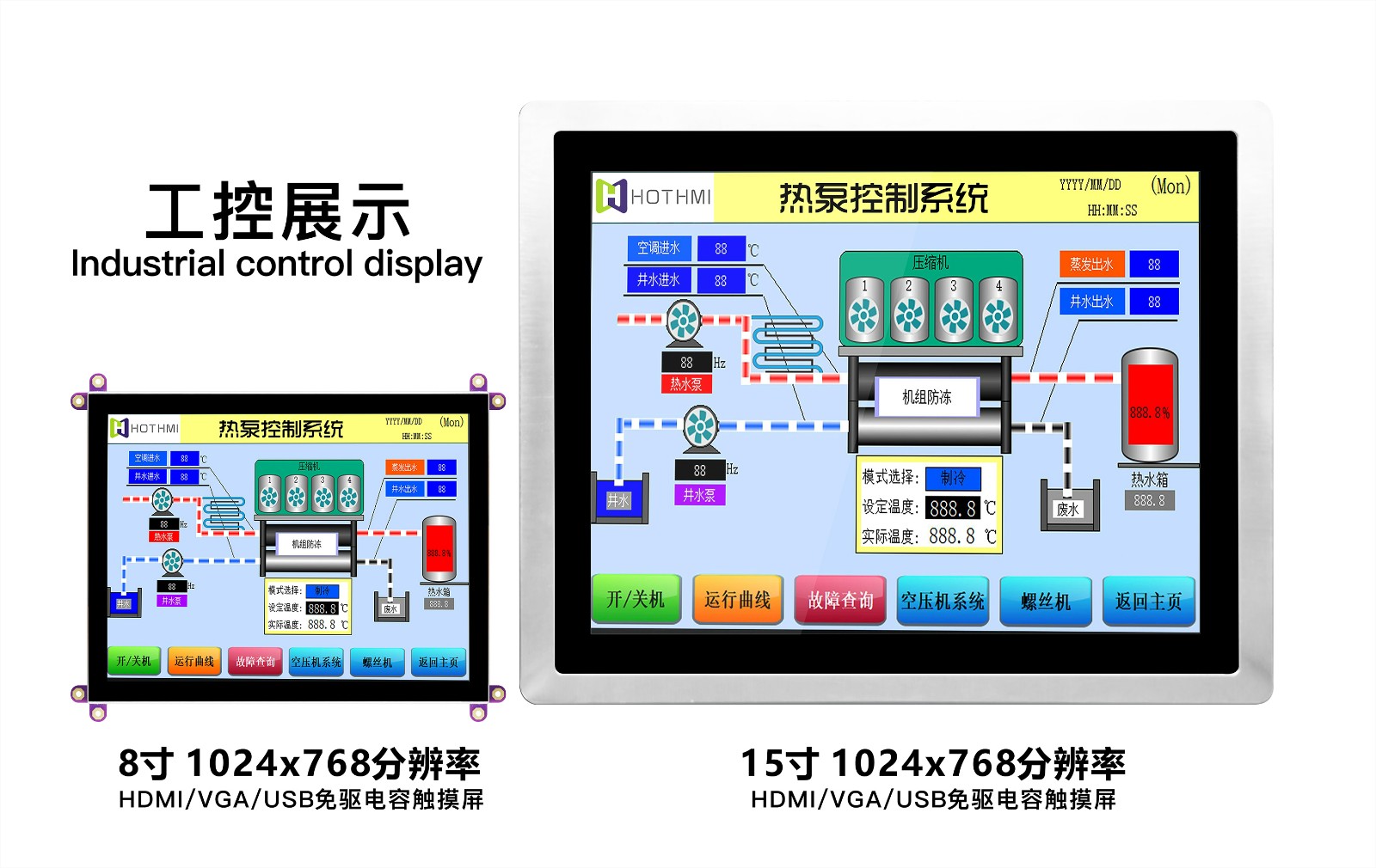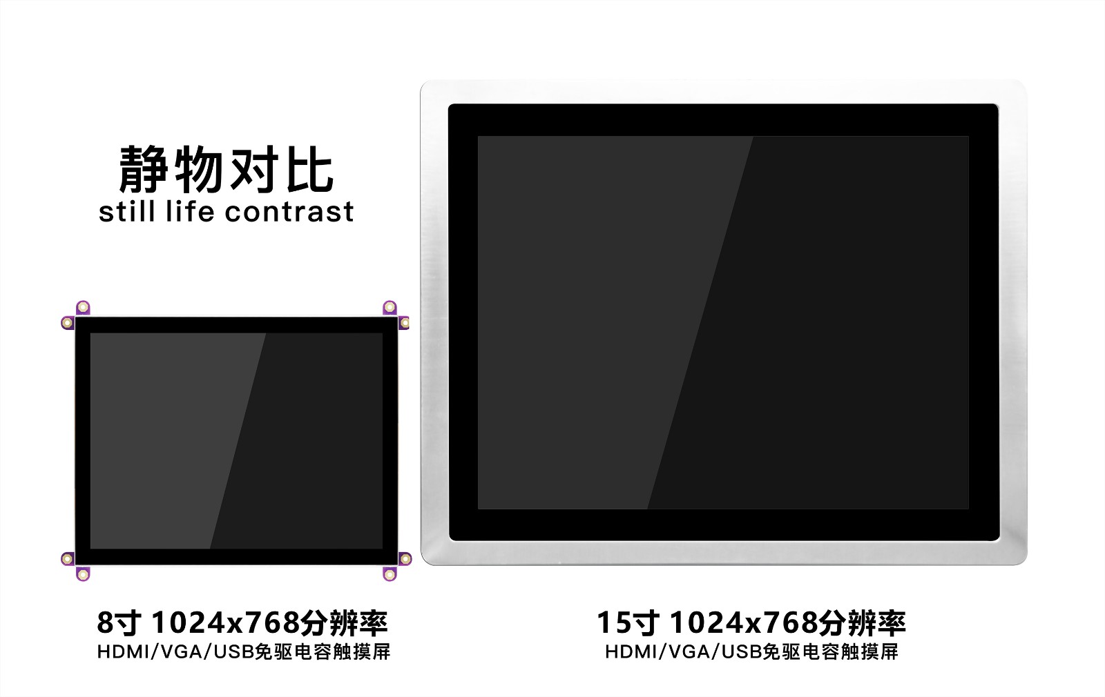 工業(yè)級8寸HI接口顯示屏與15寸HI接口顯示屏對比同屏展示