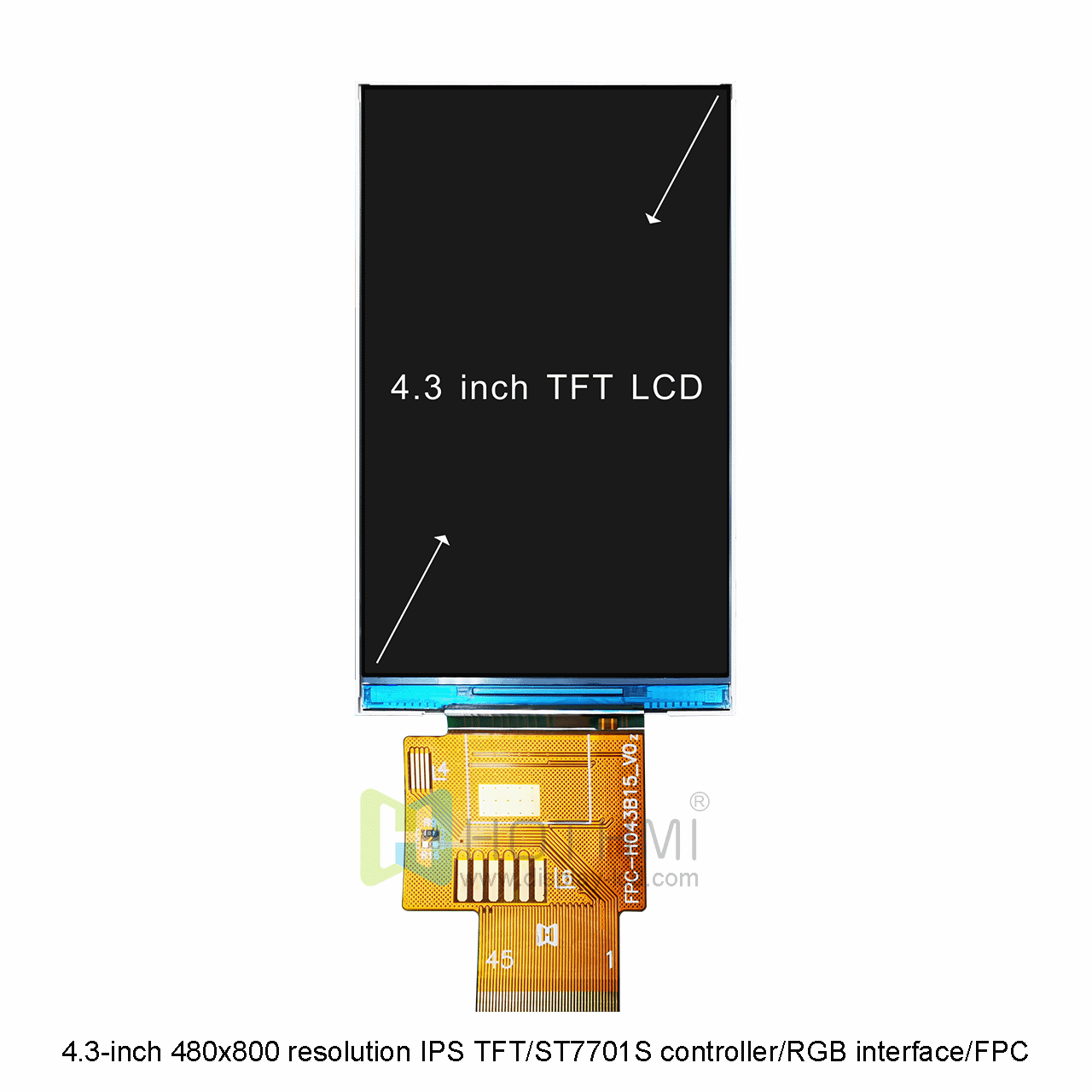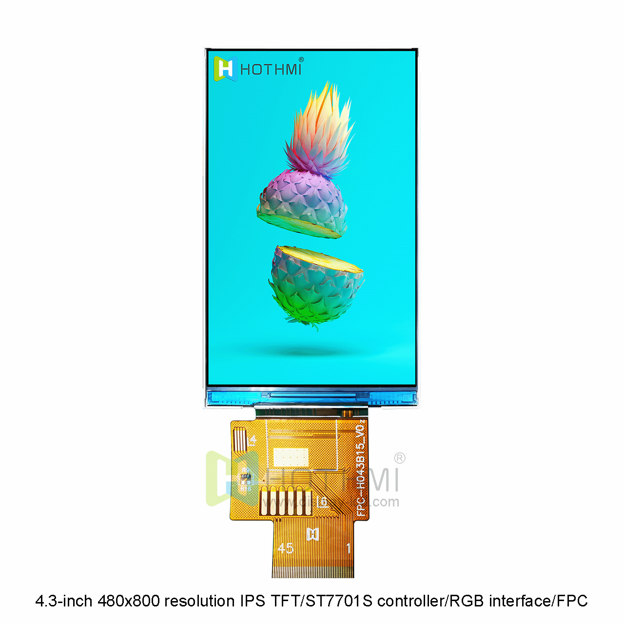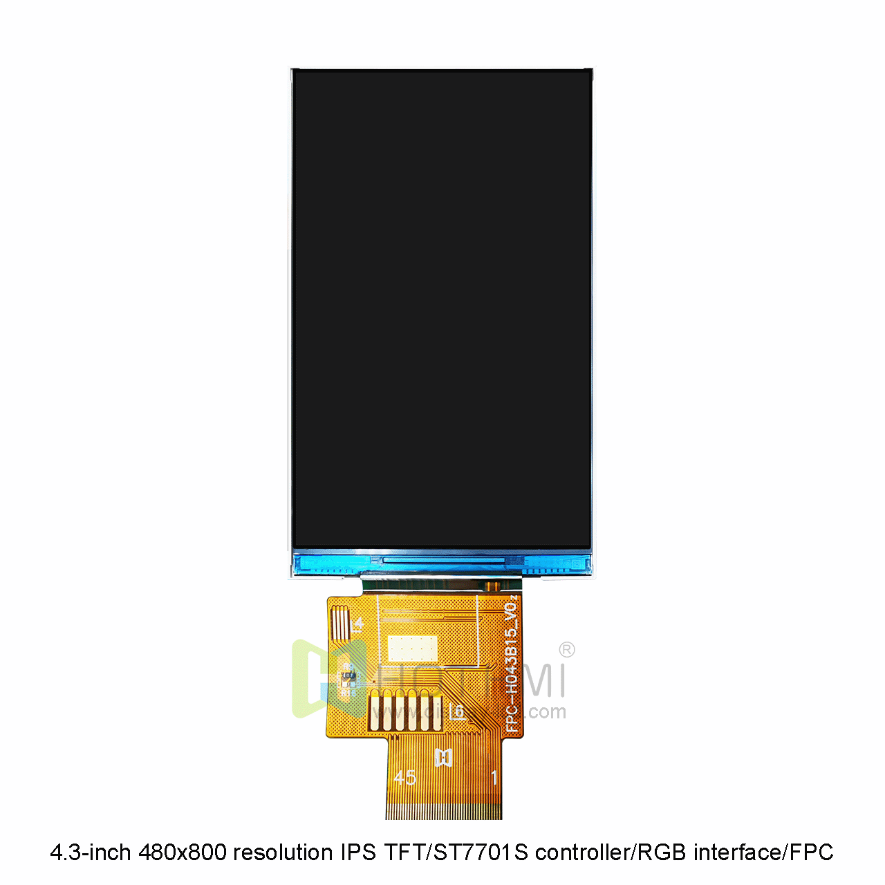 4.3英寸480x800分辨率IPS寬溫TFT/ST7701S控制器/RGB接口/FPC插接/STM32/RK TFT-H043B15WVIST4N45這款顯示屏是一款全視角顯示屏,不管你從哪個角度觀賞,都有良好的觀賞效果。由ST7701S控制,屬于寬溫工業(yè)級顯示屏,工作溫度范圍為-20攝氏度至+70攝氏度。這款型號是采用FPC的連接方式,F(xiàn)PC需連接器。只需用我們的可選焊接 FPC 連接器進(jìn)行連接,易于插入或移除。此款顯示屏它的亮度為 450cd/m2。如果您需要更高的亮度,我們可以通過調(diào)整背光的排列和數(shù)量為您實現(xiàn)。這款型號是不帶觸摸版本,同款產(chǎn)品我們還提供帶電容觸摸的型號。