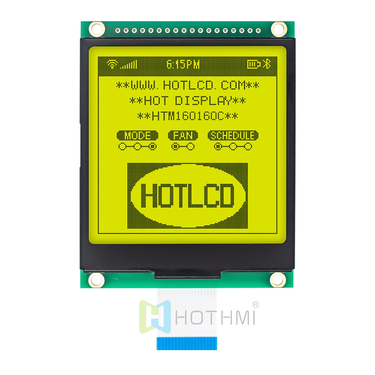 3.3 英寸 160x160 LCD 圖形模塊鮮艷黃綠色背景上顯示深色像素。這款透射式 LCD 顯示屏經過精心設計,可在較暗的環(huán)境下使用時提供最佳的可視性和令人印象深刻的色彩。顯示屏內置強背光,可提供高對比度并確保屏幕上所有圖形的易讀性。