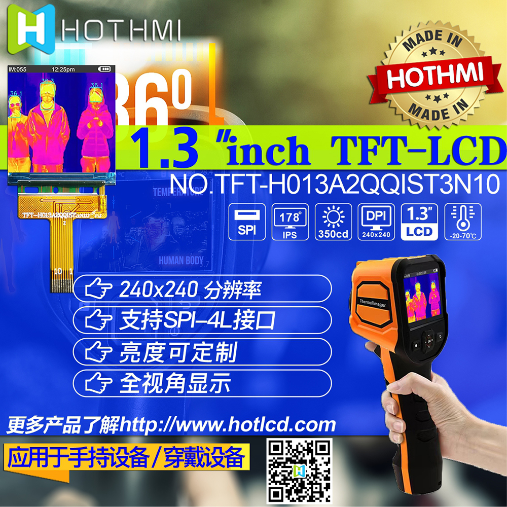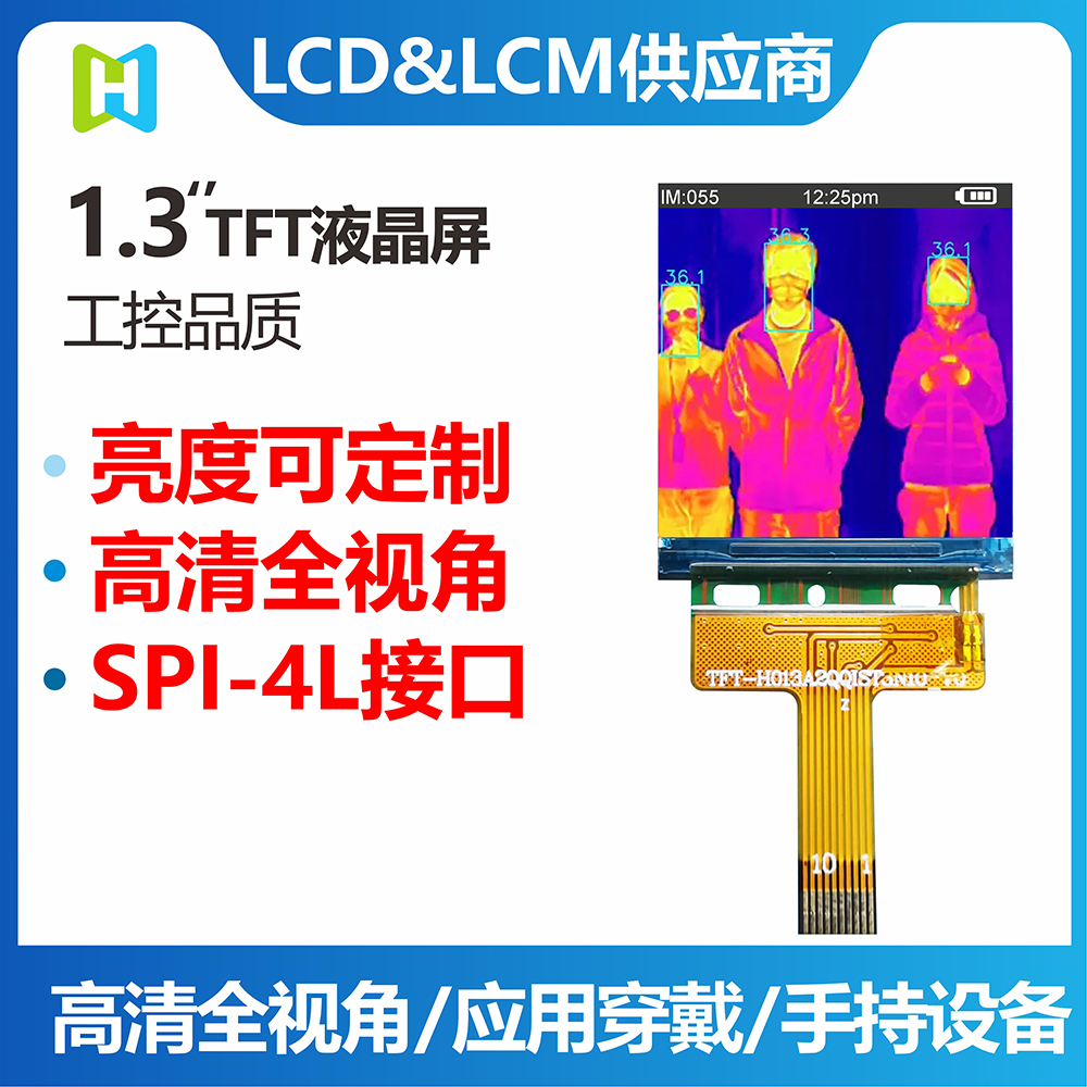 這款1.3寸TFT彩屏,非常適用于手持式紅外測溫槍顯示屏(紅外測溫儀顯示屏),支持SPI接口,具有尺寸方正、結(jié)構(gòu)緊湊、高亮度、全視角、色彩豐富的特點,顯示數(shù)據(jù)一目了然。