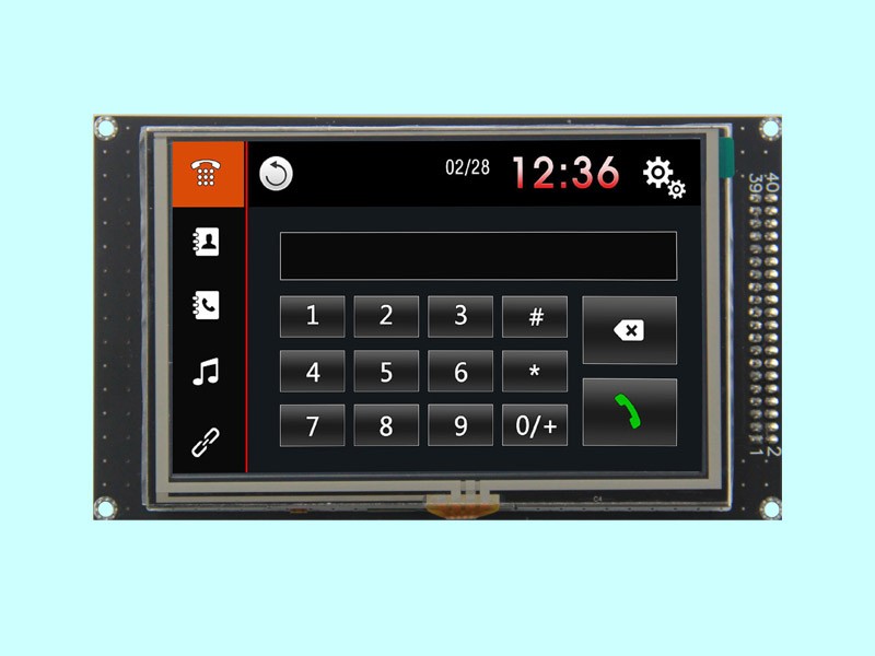 因此,鑫洪泰HOTLCD研發(fā)團(tuán)隊(duì)設(shè)計(jì)一款方便客戶使用的MCU8/16位接口的5.0寸高清TFT顯示模塊 LCM-TFT050T1,具有高清800x480分辨率,高畫質(zhì),全視角,65K/262K真彩色,內(nèi)置SSD1963控制器,無需外圍電路即可連接主板(可選配連接器),單電源DC3.3V供電。此款TFT模塊可選配觸摸屏并內(nèi)置XPT2046電阻觸摸屏驅(qū)動(dòng)器。