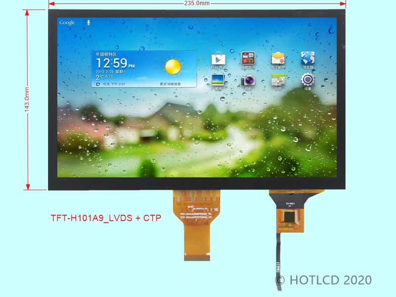 10.1寸TFT橫屏|帶電容觸摸|1024*600IPS寬視角|LVDS接口|厚度5.0高亮度背光TFT-H101A9WSIFTKC40