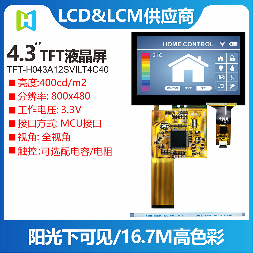TFT-H043A12SVILT4C40 4.3寸TFT-LCD顯示器顯示全方位視角,此型號(hào)外觀尺寸為 105.42*67.07mm, 有效尺寸為95.040*53.856mm,4.3寸A12的工作溫度為-20℃~+70℃而儲(chǔ)存溫度則為-30℃~+80℃。此款4.3寸顯示屏帶有電容式觸控屏幕。產(chǎn)品主要用于工業(yè)級(jí)設(shè)備上包含了工業(yè)儀器儀表設(shè)備醫(yī)療儀器、GPS導(dǎo)航、咖啡機(jī)、洗衣機(jī)等白色家電、能源系統(tǒng)、充電樁、POS系統(tǒng)、自動(dòng)販賣機(jī)、停車場(chǎng)收費(fèi)機(jī)等.