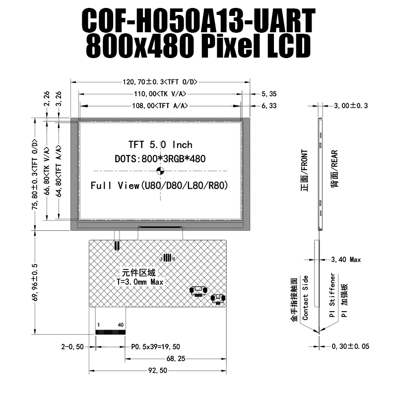 體驗(yàn)COF-H050A13-UART-A01 5.0英寸智能串行屏的卓越視覺性能和可靠性。其具有日光可讀性、寬溫度范圍和用戶友好的界面,使其成為需要緊湊高質(zhì)量顯示的各種項(xiàng)目的優(yōu)秀選擇。