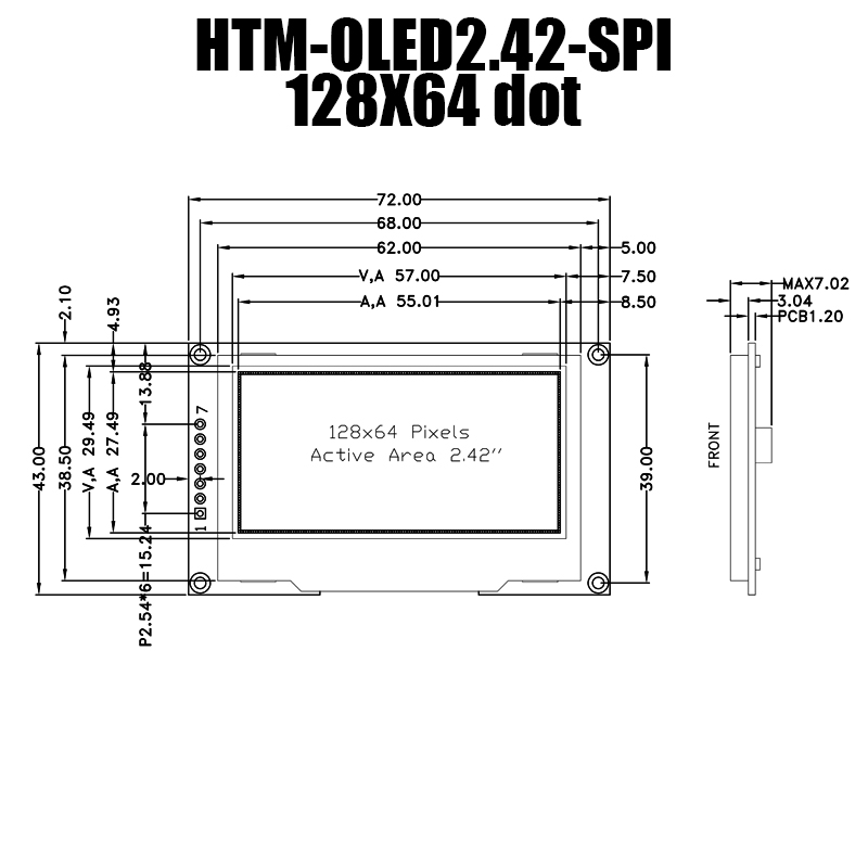 我們推出了一款2.42英寸OLED顯示屏,作為高質(zhì)量的視覺解決方案,廣泛適用于各種應(yīng)用領(lǐng)域。分辨率為128x64點(diǎn),該顯示屏呈現(xiàn)清晰、詳細(xì)的圖像,以實(shí)現(xiàn)最佳觀看效果。A.A(有效顯示區(qū)域)為55.01x27.49毫米,提供充足的空間展示您的圖形和數(shù)據(jù)。