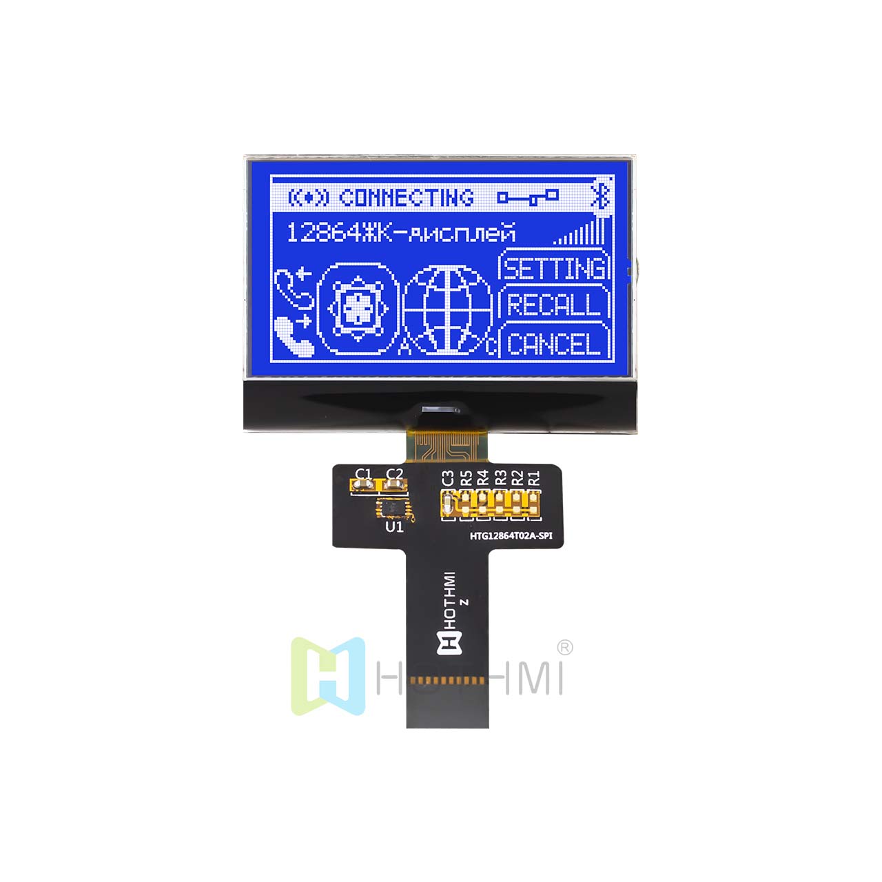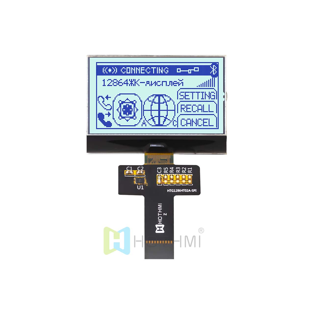 | 2.2 英寸 128x64 圖形 COG | FSTN+ | 紅綠藍背光 | SPI | ST7567 | Arduino HTG12864T02A-35S--SPI-FONT | COG | 128x64 |