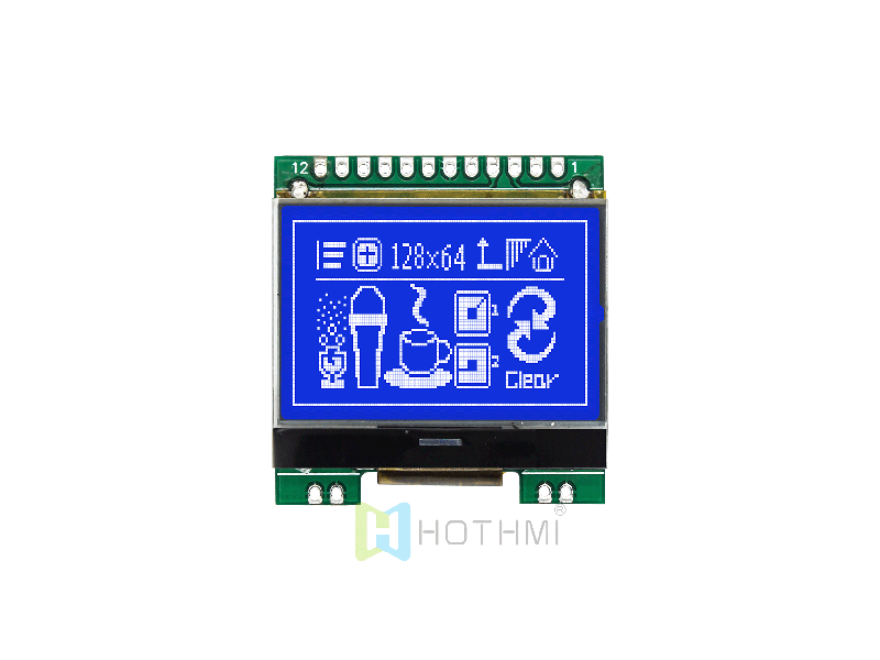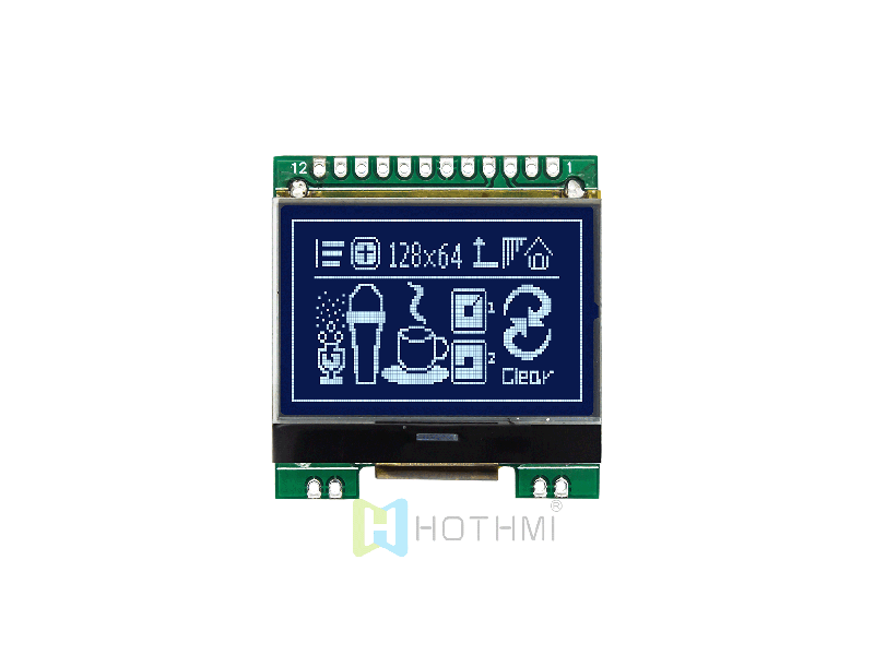 | 3.2"128X64圖形液晶模組/STN負顯/藍底白像素顯示/白色背光/全透偏光片 HTM12864B-25W-A5P | 圖形液晶模組 | 128x64 |