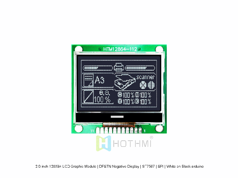 | 2.0 英寸128X64 LCD 圖形液晶模塊 | DFSTN 負顯 | ST7567 | SPI | 黑底白字 arduino HTM12864-112-41W-A5P | 圖形液晶模組 | 128x64 |