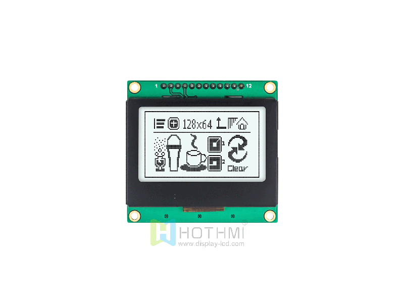 | 2.7 英寸 LCD128x64 圖形 LCD 顯示模塊 | STN+黃綠背光 | SPI 接口 | Arduino HTM12864-122-01Y-A3P | 圖形液晶模組 | 128x64 |